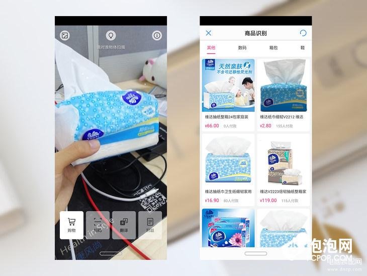经过多年的发展,华为的EMUI操作系统已经非常成熟。但EMUI还是没有放慢前进的脚步,AI的流行让EMUI加入了许多AI功能,比如EMUI 8.2中的AI购物。从下图可看出,一但在AI购物界面把镜头对准一个物体,手机就会识别出物体是什么,并列出可供购买的商品列表。点击任意一个商品,手机就会跳转到购物软件,以便用户购买。在相机界面左上角或导航键右侧(前提是开启“屏内单键导航”)会出现眼睛图标,点击它就可以进入AI购物扫描界面。