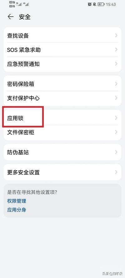 第二步:进入此页面之后,接着在其界面中就即可找到【应用锁】;