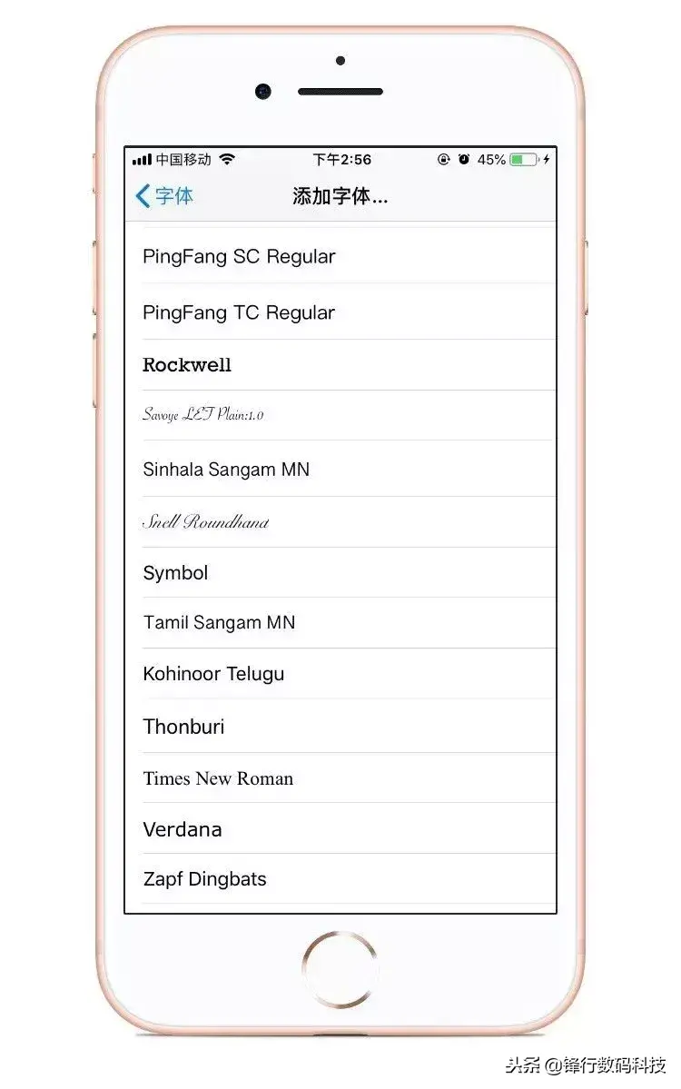 5.然后就可以直接选择字体了,中文字体样式比较少,当然我们也可以继续添加字体,如果你的手机已经越狱了,那么你就可以添加更多的字体了。