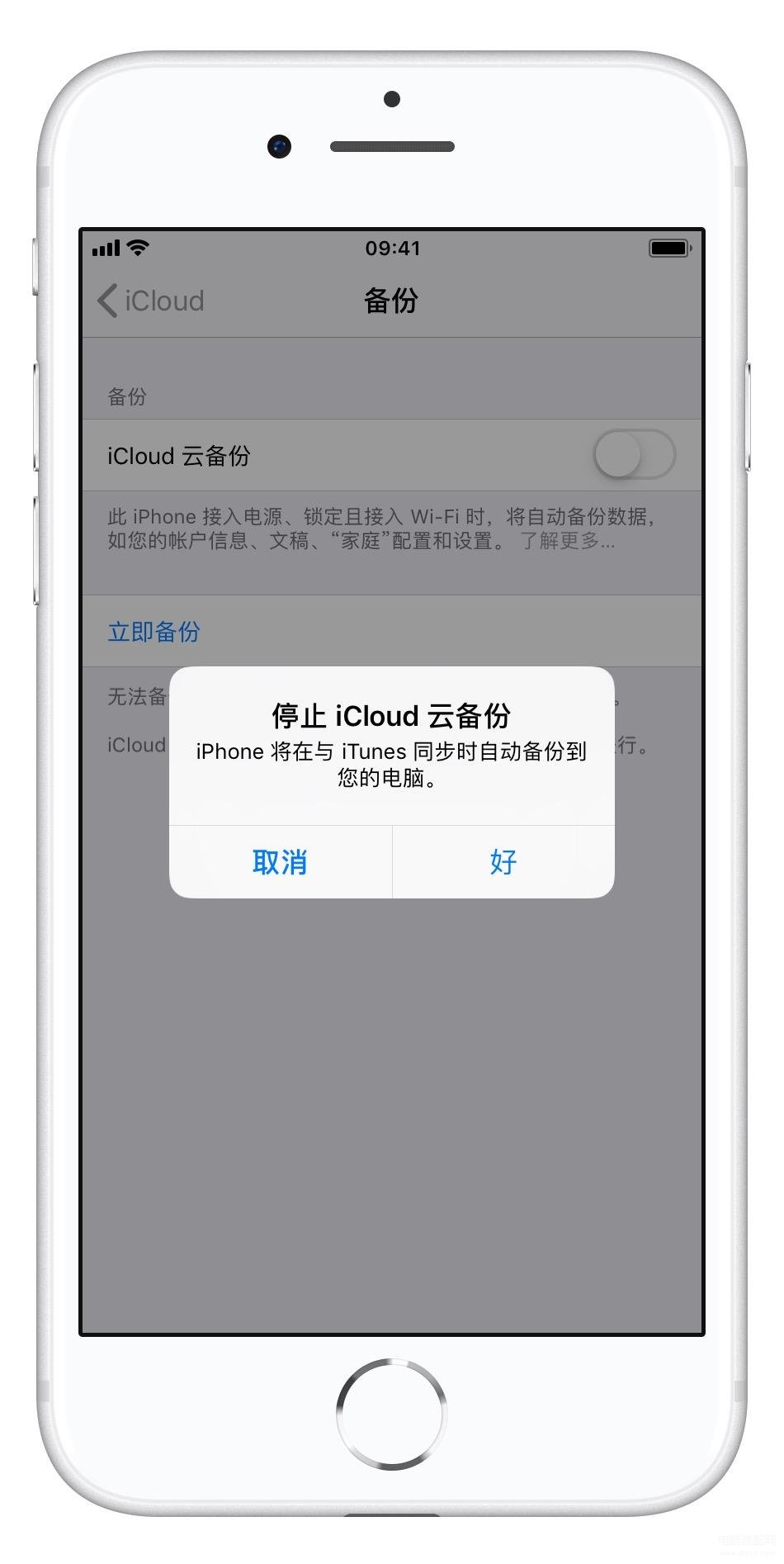◦ 优点:彻底关闭 iCloud 服务,再也不会收到备份提醒;