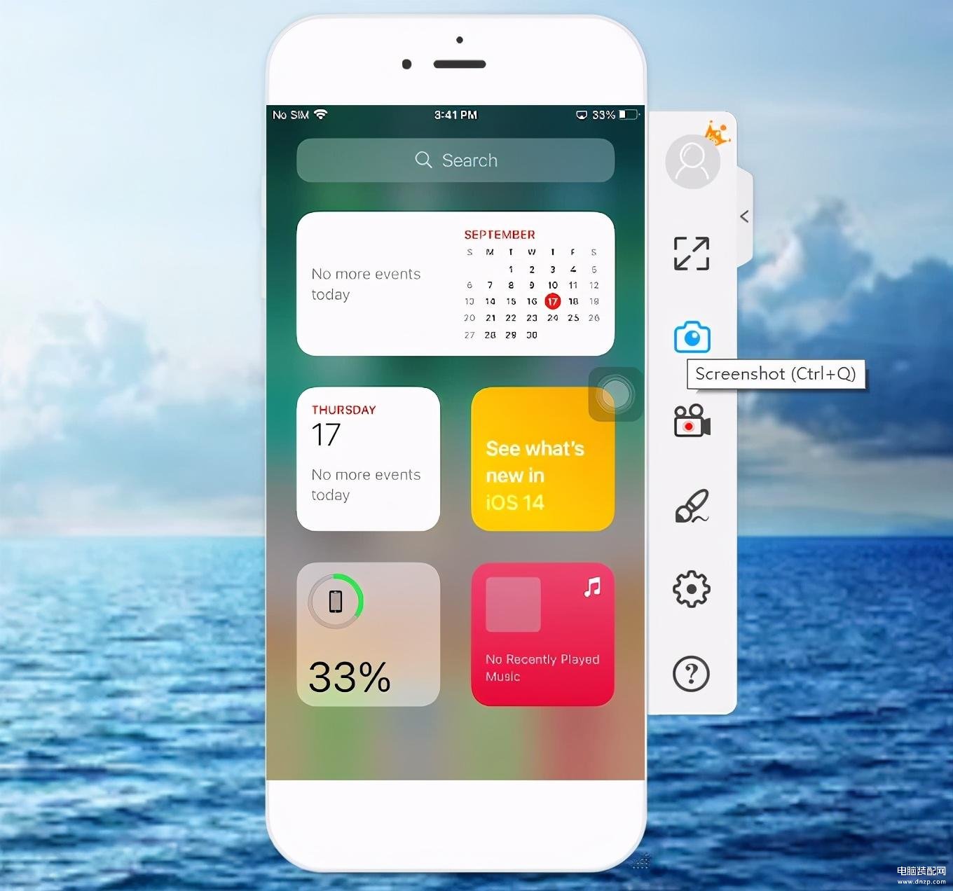 当你的手机屏幕显示在电脑上后,你可以用鼠标点击右侧工具栏上的截图图标,也可以直接使用默认的快捷方式在iOS 14上进行截图。